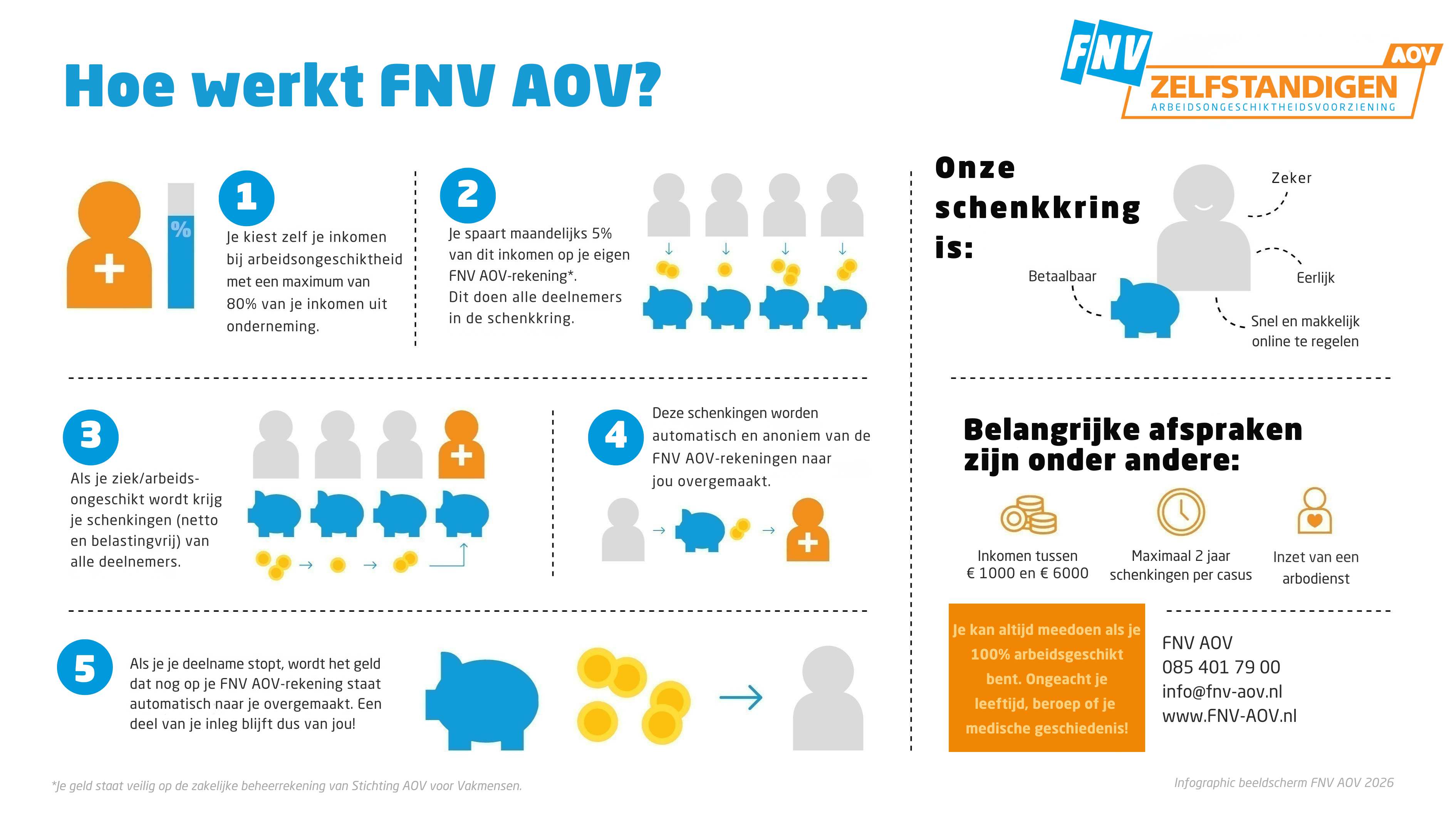FNV AOV is bewust eenvoudig opgezet en werkt als een schenkkring. Geen ingewikkelde constructies, maar een helder collectief model.